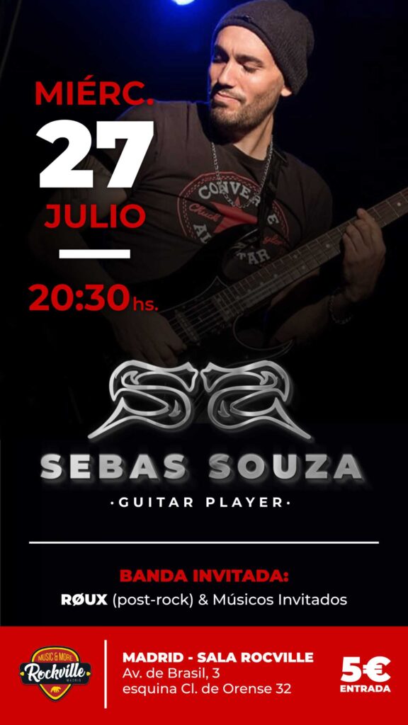 Su música como arma, viajero y ciudadano del mundo, Sebastián Souza ofrece melodÃas memorables para disfrutar intensamente y descubrir otros universos. Recientemente participó en el RISING FEST Francia 2025 como guitarrista invitado para SKILTRON y compartió show en Madrid con José Rubio Guitarrista referente en la escena española. Actualmente, se encuentra reversionando EN LA GLORIA, masterizando su segundo disco COSMIC RAIN y componiendo su tercer disco solista.